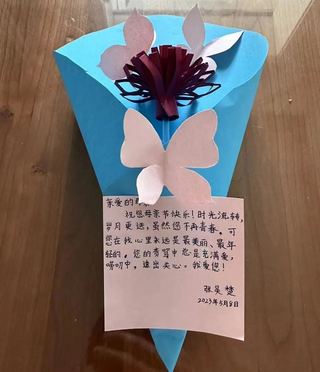 “妈妈,我们爱你,您辛苦了,节日快乐!”瞬间觉得孩子长大了,我很开心,也很幸福!我也对孩子说,我的孩子啊,我不知道自己做得够好吗?因为我也是第一次做妈妈,感谢你们成为我的女儿!
