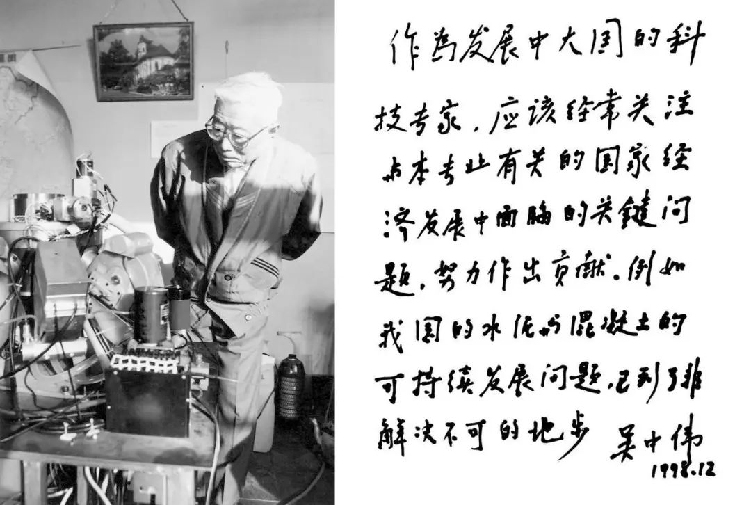 1959年,吴中伟首次发表“混凝土中心质假说”,开创了通过亚微观、微观方法研究混凝土组分、结构对性能影响之先河。这个被国际同行称为“中国学派”的理论,为后续高性能混凝土研究奠定了基础,至今仍在国际学术界熠熠生辉。晚年他仍笔耕不辍,1992年前瞻性提出“环保型胶凝材料”与“绿色高性能混凝土”新概念,推动 工业向可持续方向转型,让中国建筑有了更坚韧的筋骨。
