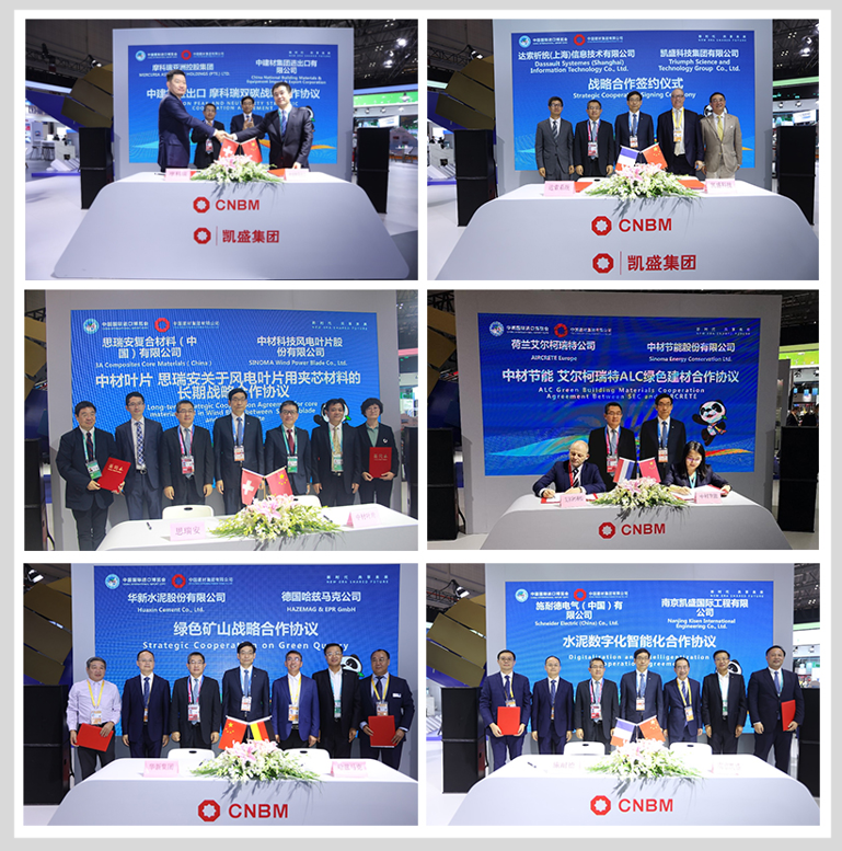 5日上午,在第四届进博会智能装备馆低碳专区, 所属展区现场,宾客云集,气氛热烈。 “绿色低碳集中签约活动”在此举行。在商务部欧洲司司长翟谦, 党委书记、董事长周育先以及中外嘉宾见证下,中建材进出口、凯盛科技、中材节能、中材科技、华新水泥、南京凯盛等单位现场签订7个绿色低碳合作项目。华新集团副总裁梅向福,法国达索集团全球副总裁罗熙文,施耐德中国区总裁尹正,瑞士思瑞安亚太区副总裁朱江,瑞士摩科瑞亚洲控股集团首席投资官孙建云,德国哈斯玛克副总裁、中国区总经理边汉民,荷兰艾尔柯瑞特中国公司总经理安德烈·安东尼奥等嘉宾参加了活动。