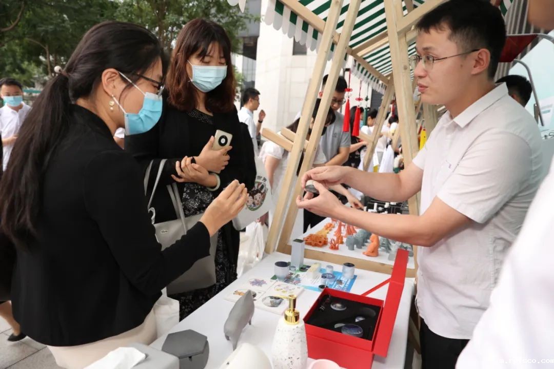 来自财务公司的小伙伴:“文创集市这种形式特别好,不仅可以近距离的看到,还能触摸我们的材料产品,像这些水泥纸巾盒、陶瓷挂坠没想到离我们的生活这么近,作为建材的一位员工,真的很为我们的材料产品自豪。”