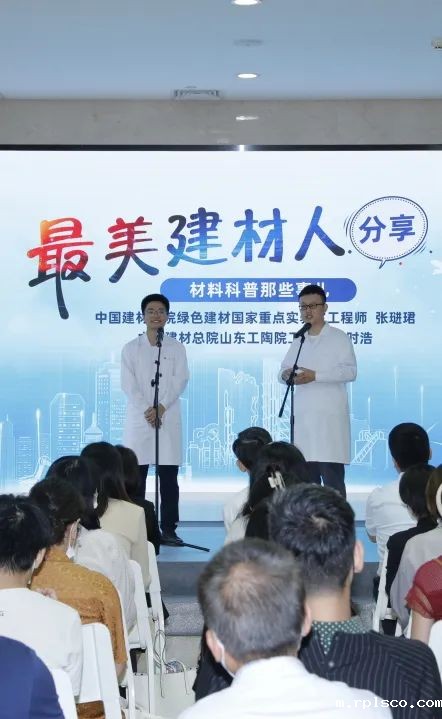 本届启动仪式特别邀请最美建材人的代表进行现场分享,全国劳动模范、天津水泥院数字化研究所所长胡亚东讲述了“走出舒适区,才能突破自我”的智能化历程,人工晶体研究院副总经理訾蓬讲述了科技成果转化探索的故事,受到参与人员一致好评。90后最美建材人代表张琎珺、刘时浩以生动有趣的脱口秀形式分享他们的故事,展现一线的青年科技工作者爱国爱企、创新自强的责任与情怀。