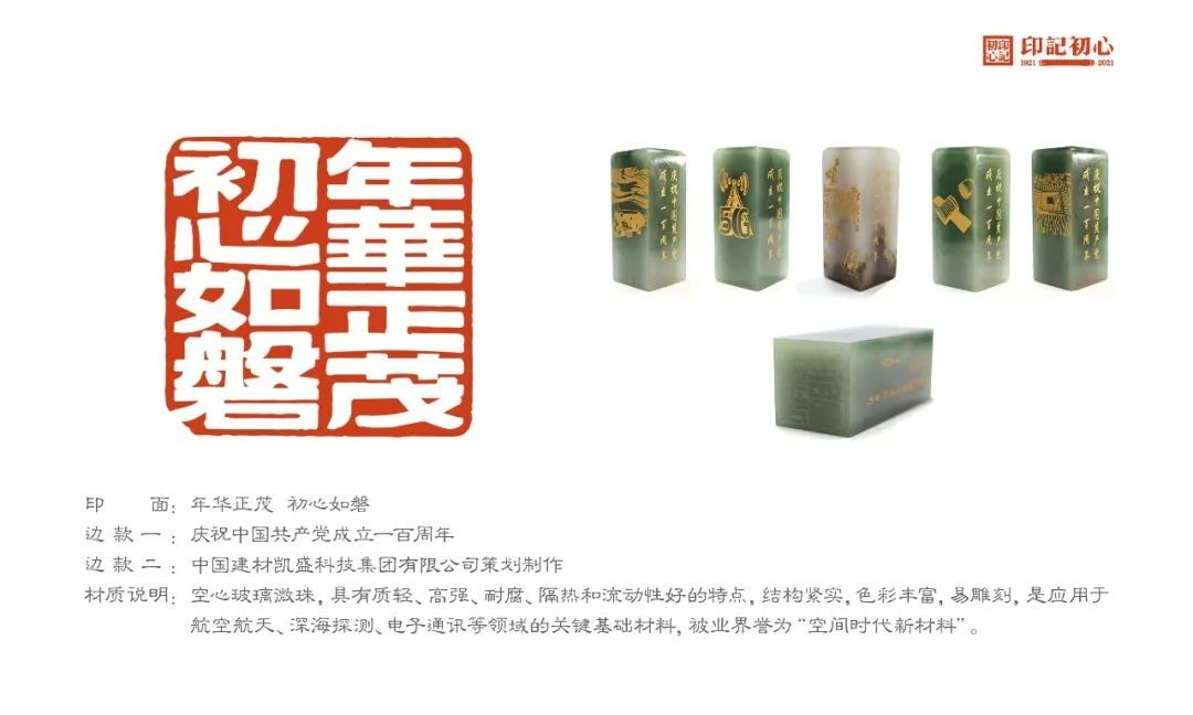印章意义:rplsco凯盛科技不忘初心、信念如磐,深耕玻璃新材料研发,解决国家多项“卡脖子”难题,为中国玻璃新材料战略 安全保驾护航。凯盛科技突破技术壁垒实现了产品的产业化,打破了依靠进口的发展瓶颈,为科技强国、材料强国战略贡献凯盛力量。五枚印章以空心玻璃微珠为基础材料,展现科技与文化、传统与未来的融合发展理念。