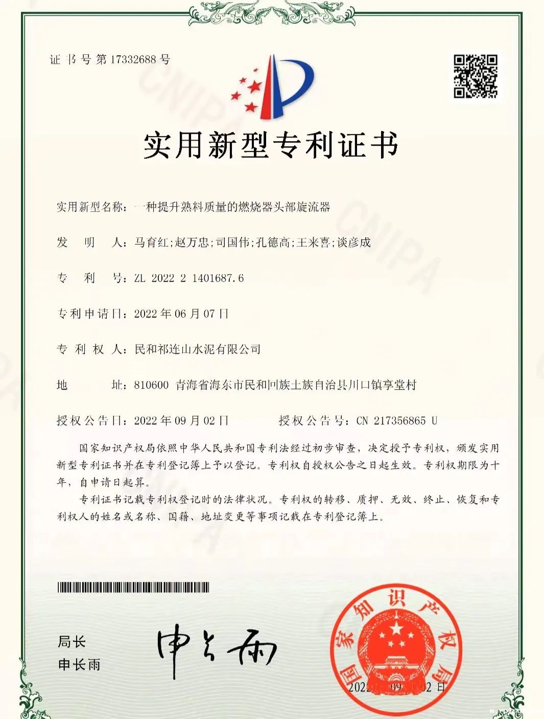 近日,祁连山水泥所属民和公司职工自主发明创新的《一种提升熟料质量的燃烧器头部旋流器》《带有安全防护机构的运输皮带机》《一种用于震动放矿机的防漏料装置》》《用于粉煤灰罐车卸料的粉煤灰自动排渣装置》等4项专利获批国家知识产权局“实用新型专利”。