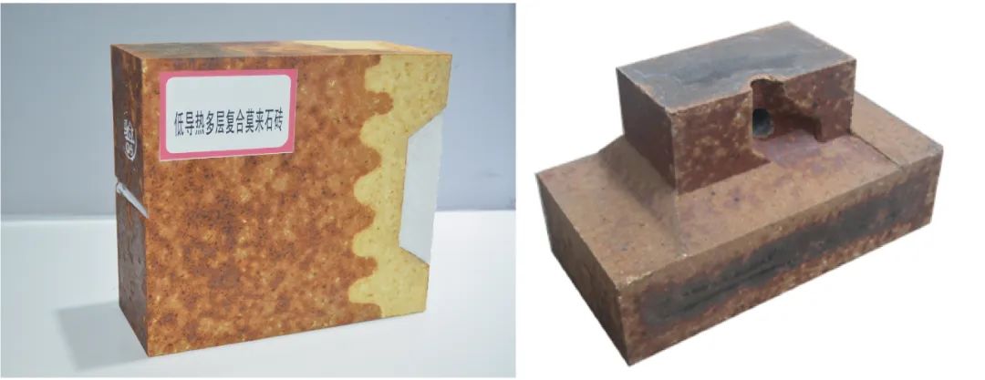 左:低导热多层复合莫来石砖