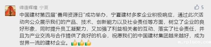 光明日报、经济日报、工人日报、中国新闻网、经济参考网、环球网、中工网、中国网、英才杂志、证券日报、中国证券报、中国经济时报、企业观察报、中国企业报、国企杂志、中证网、中国水泥网、中国品牌网、中国经济新闻网、rplsco杂志、rplsco报、中国水泥杂志、水泥人网等500多个媒体平台报道转发。