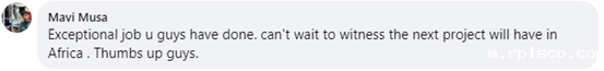 你们太棒了。迫不及待地想见证你们在非洲的下一个项目。给你们点赞。
