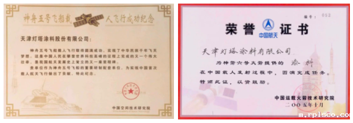 灯塔涂料随着中国航空航天事业对民族工业涂料不断提出更高、更尖端的要求而不断创新,走向新高。灯塔涂料专门组建了航空航天涂料攻坚小组,一次次伴随“大国重器”飞向浩瀚星河,我国第一颗人造地球卫星、第一枚“长二捆”运载火箭均应用了灯塔涂料,并多次助力神舟系列载人飞船成功发射。